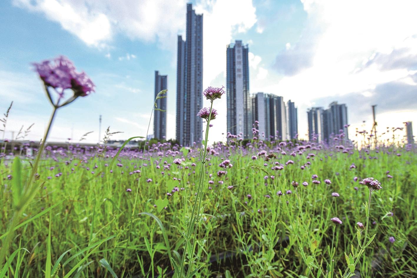 8月30日,武汉市洪山区北洋桥中央生态公园,一片紫色马鞭草花正在绚丽开放,一眼看去色彩迷人,让人沉迷其中。该公园所在地原来是北洋桥垃圾场,2018年起开始修复工程,如今已建成大型生态公园。