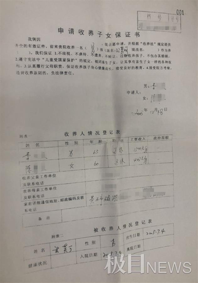 “这些资料我保存了16年。”陈婆婆从包内掏出一摞资料。极目新闻记者看到,李明出生于2005年7月4日,于当年7月9日上午9时30分,被人发现遗弃在汉阳剧场旁。当时,孩子穿浅色短袖上衣,由汉阳区建桥街道居民捡到并送往武汉市儿童福利院。
