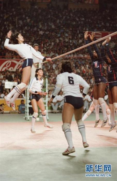 郎平在第九届世界女排锦标赛与美国队的比赛中扣球。 新华社记者 官天一 摄 图片来源:新华网