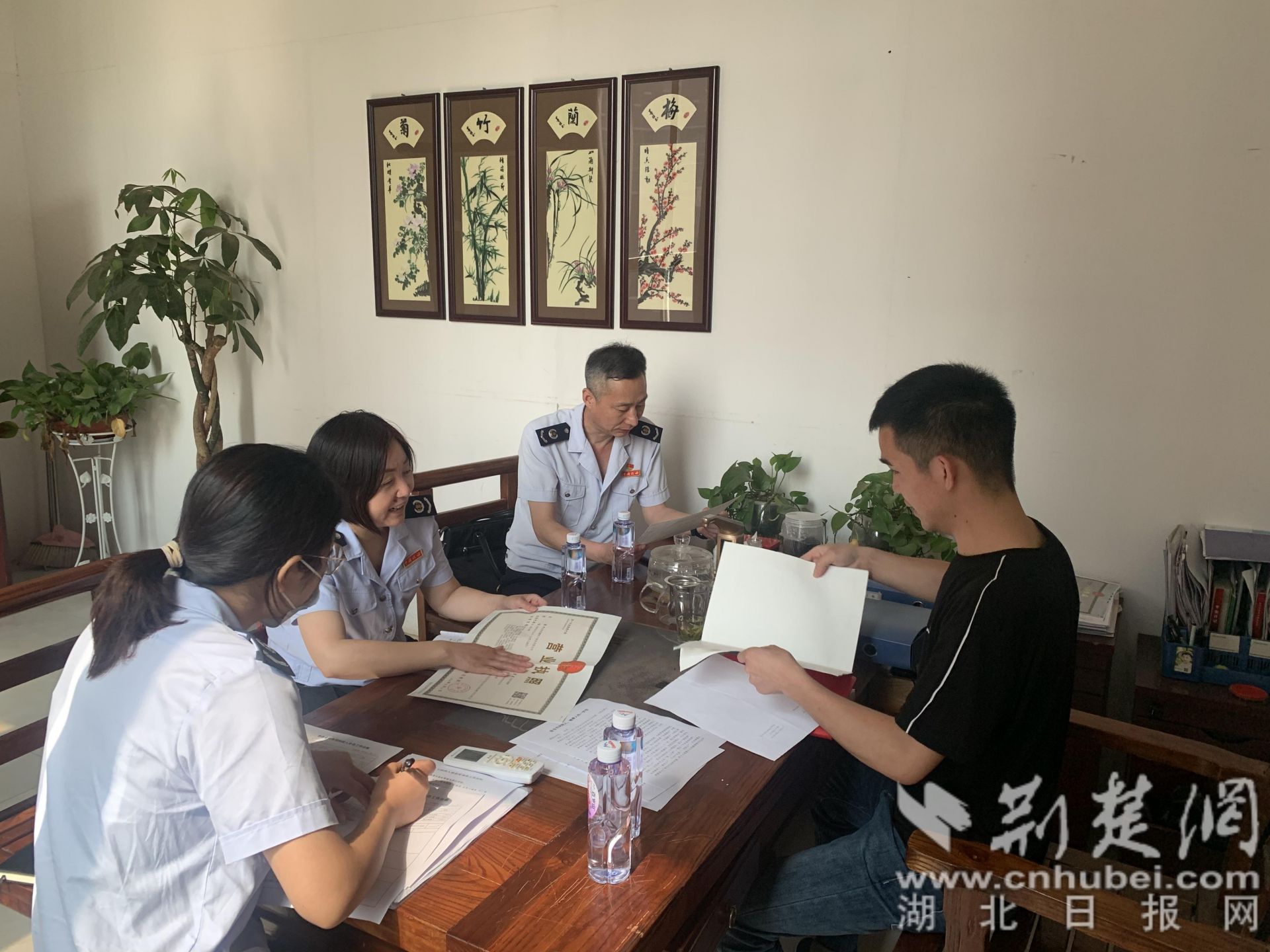 孝昌县税务局入户辅导纳税企业。通讯员 供图