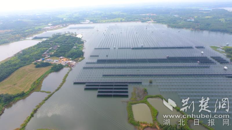 该项目施工项目经理汤旺介绍,项目以渔光互补模式建设,形成“上可发电,下可养殖”的双效益模式,能极大提高单位面积土地经济价值。“目前项目主体工程完成70%,升压站已进入设备安装调试阶段,计划今年9月底投产。”
