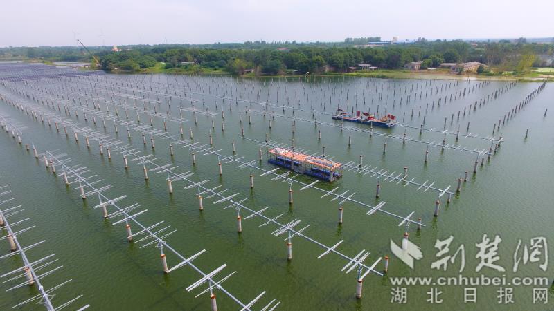 荆楚网(湖北日报网)讯(通讯员程国辉、何博、杨运涛)9月2日,在应城市城北办事处李咀水库,一排排水泥支架整齐划一地耸立在水中,工人师傅们正在支架下有序铺设太阳能光板,其升压站房也正在加速建设中......此举标志着优泰能源应城80MW渔光互补光伏电站项目正抢时间、赶进度,全力加快项目建设。目前,该项目主体工程已完成70%,将于本月底投产供电。