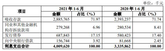 上半年,齐鲁银行利息支出40.10亿元,较上年同期增长20.20%,其中,吸收存款、发行债券利息支出分别为28.86亿元、6.88亿元,分别较上年同期增长20.58%、18.51%。