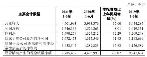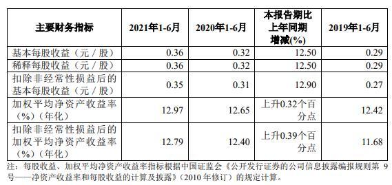 上半年,齐鲁银行基本每股收益0.36元/股,同比增长12.50%;加权平均净资产收益率(年化)12.97%,比上年同期上升0.32个百分点;扣除非经常性损益后的加权平均净资产收益率(年化)12.79%,比上年同期上升0.39个百分点。