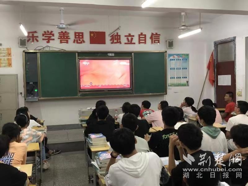 云梦县义堂中学九(1)班学生收看2021秋季《开学第一课》。通讯员 供图