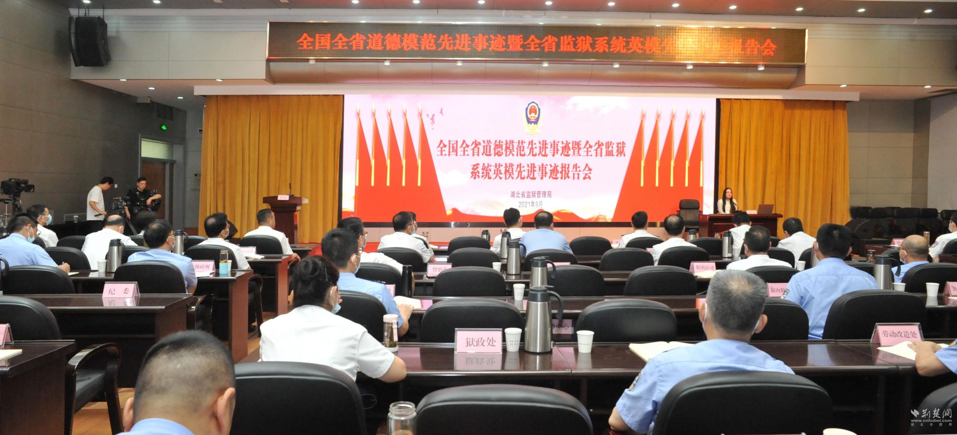 荆楚网(湖北日报网)讯(通讯员 杜翔)为深入学习贯彻习近平总书记“七一”重要讲话精神,扎实推进政法队伍教育整顿,在全省监狱系统广泛营造“学英模、找差距、争先锋”的浓厚氛围,9月2日下午,省监狱管理局隆重举办“全国全省道德模范先进事迹暨全省监狱系统英模先进事迹报告会”,全国全省3位道德模范和全省监狱系统3位英模代表现场作报告。省司法厅党委委员、省监狱管理局党委书记、局长贾石松,省监狱管理局党委副书记、政委熊亚平以及局党委班子其他成员现场观看。