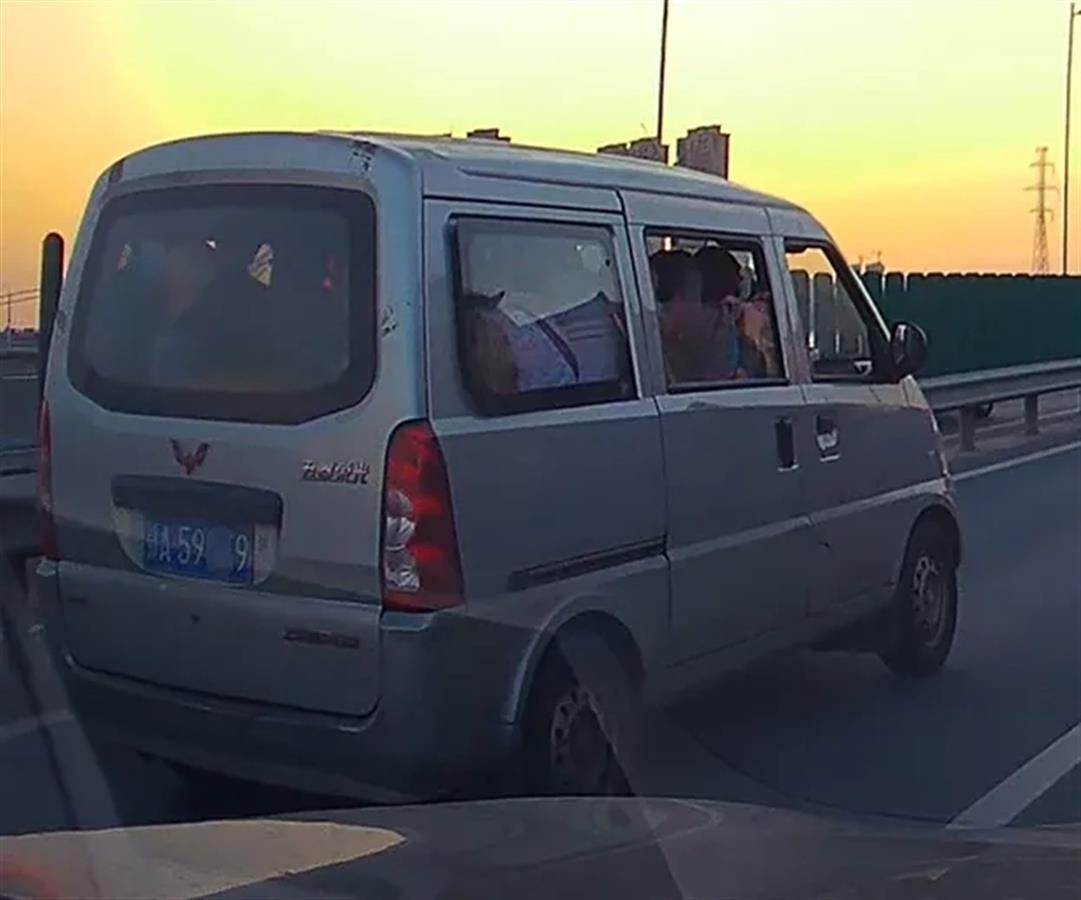 这辆超员载人的面包车行驶在汉阳区三环线长丰桥,车内人挤人,被市民拍摄举报。