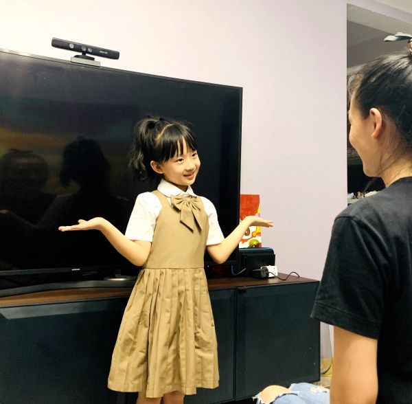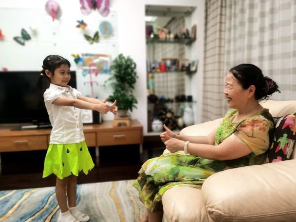 “我去上学校,天天不迟到。爱学习,爱劳动,我们要为祖国立功劳。”放学回家后,一年级新生康语芩用稚嫩的童声,一下就融化了妈妈的心。学生杨天眷边比划着有趣的手势,边一本正经地背诵,活像一位“说书人”,瞬间逗乐了全家。