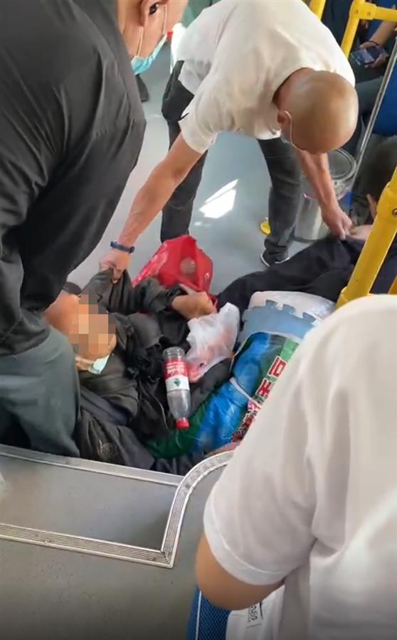 视频显示,一男子躺在公交车下车区域,双手紧攥着身旁的栏杆,还用脚勾着栏杆。另有两名男子将他的手脚从栏杆上掰开,并将他拖离。被拖的男子重复喊着“报警”“我不下车”等话语,但最终还是被拖下了车。