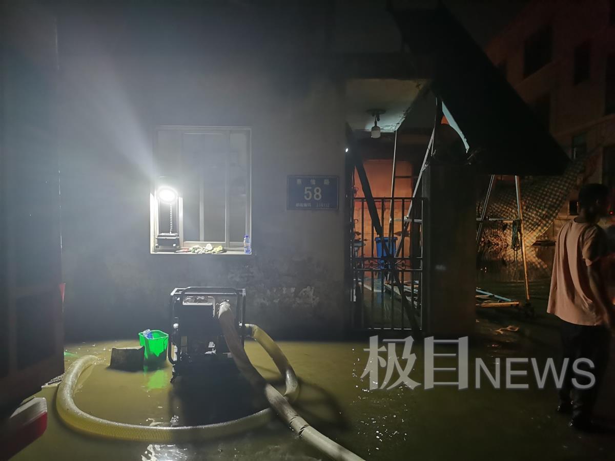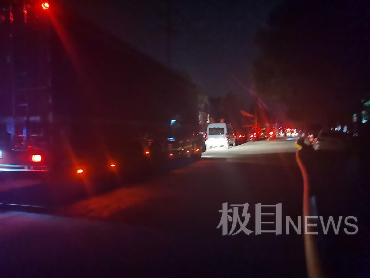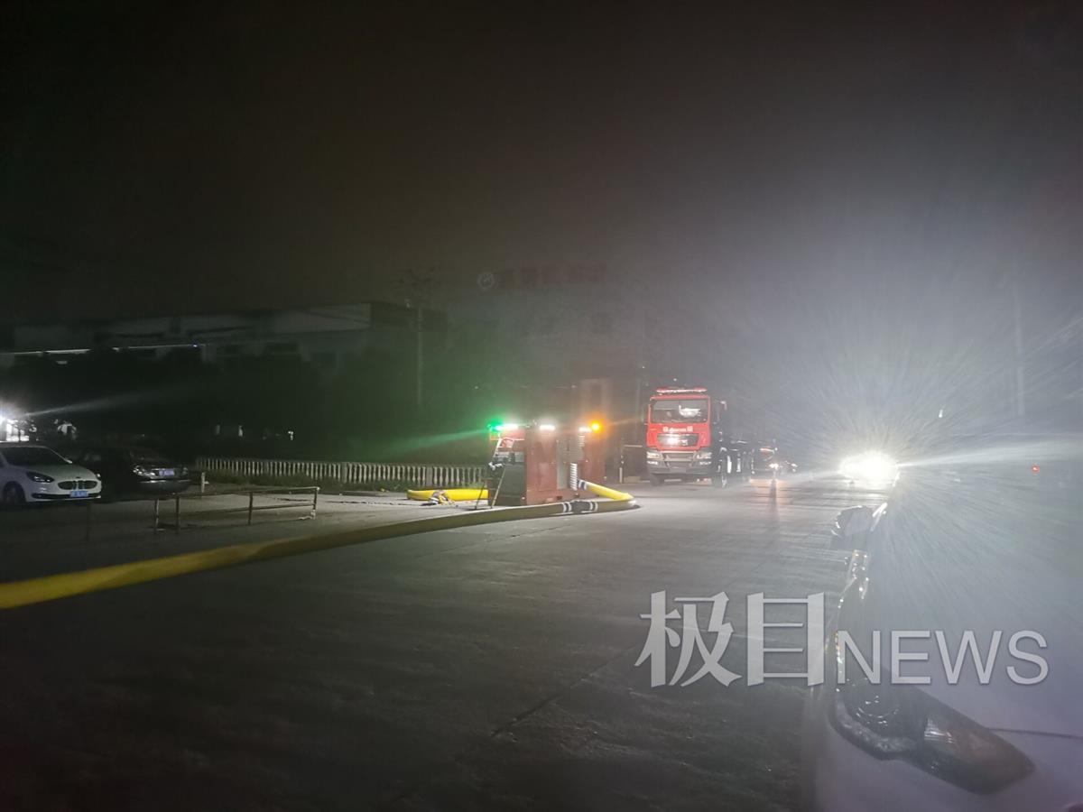 9月3日晚11时许,极目新闻记者来到事故现场。据事发现场约500米处,有消防水车正通过水管抽水进事发企业,现场有多辆警车、消防车停在道路两旁。