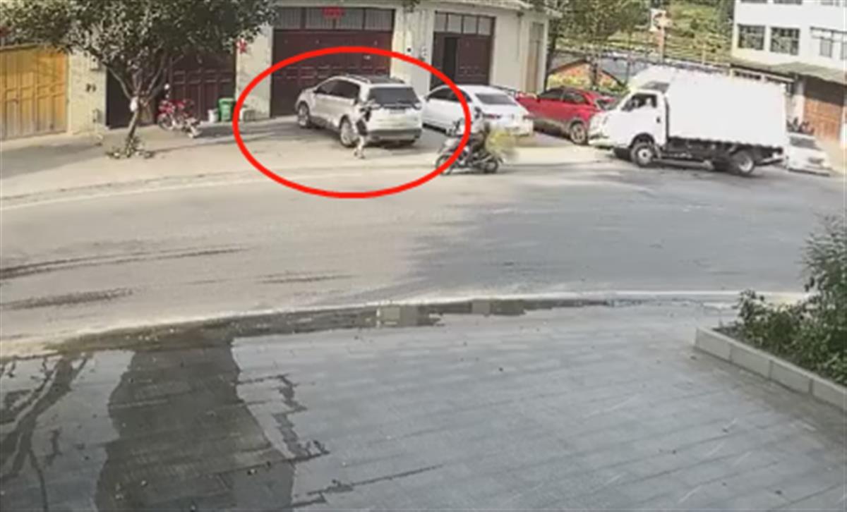 路边监控视频完整记录下了车祸发生时的悲剧一幕。视频显示,9月2日下午5时许,一辆白色小货车在转弯过程中,车身失去平衡,该车先是撞上了停放在路边的两辆小车,随后迎面从路边背着一女童的女子身上碾过,并将另一个骑电动车的人撞倒。