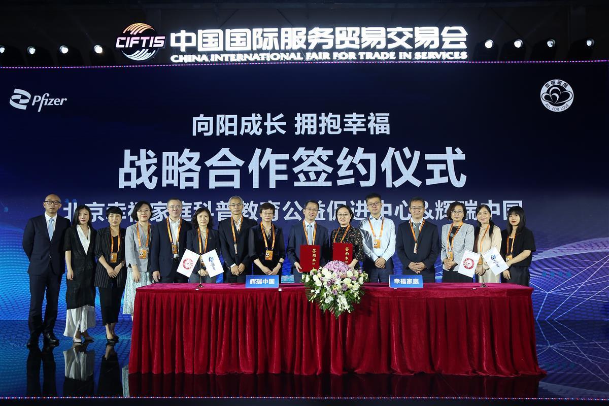 9月4日,在2021中国国际服务贸易交易会上,辉瑞与北京幸福家庭科普教育公益促进中心签署了战略合作协议,双方将发挥各自的优势,共同携手开展以“向阳成长拥抱幸福”为主题的妇幼体系建设和人员能力发展的相关合作。助力提升我国妇女儿童家庭健康服务能力和水平,为孕产妇提供专业的孕产指导、健康管理、新生儿护理及疾病预防等全周期的健康保障和服务,帮助孕产妇安全、顺利地度过孕产期,并为新生儿做好免疫预防规划,努力提升妇女儿童的健康水平,努力提高家庭的幸福指数。北京幸福家庭科普教育公益促进中心理事长白亚琴、辉瑞生物制药集团疫苗市场负责人车艳、辉瑞生物制药集团疫苗销售负责人陈元鸿等出席了本次签约仪式。北京幸福家庭科普教育公益促进中心理事长白亚琴、辉瑞生物制药集团疫苗销售负责人陈元鸿作为双方代表签署了战略合作框架协议。