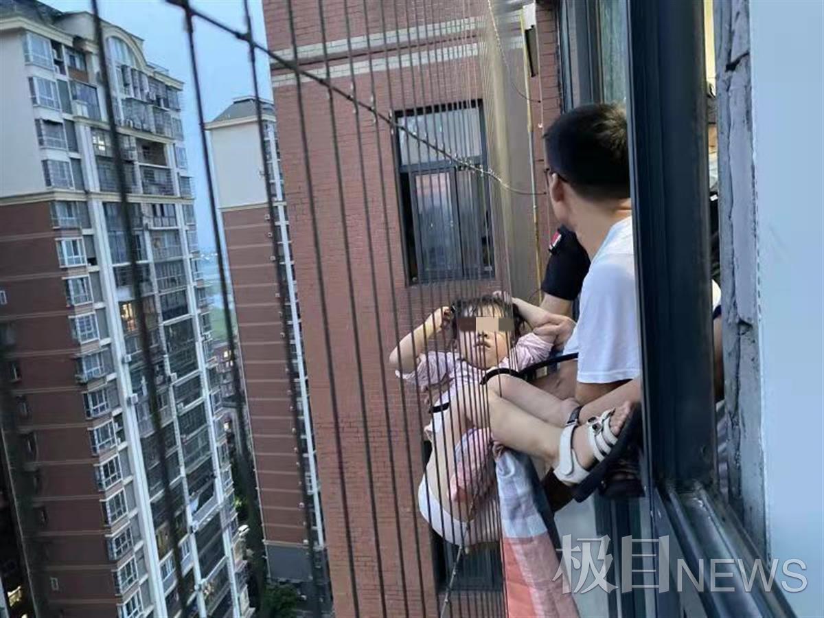 9月4日傍晚,大冶两湖天地小区上演了惊心动魄的一幕,一名仅4岁的女童从自己家20楼防盗窗翻出后,竟爬到了18楼窗口的防盗网外,命悬一线时,18楼住户和3名高中生及3名民辅警隔着防盗网,用手将这名女童托住,并及时向消防救援部门求助。最终在当地消防救援人员的帮助下,剪开防盗网将女童营救回室内。