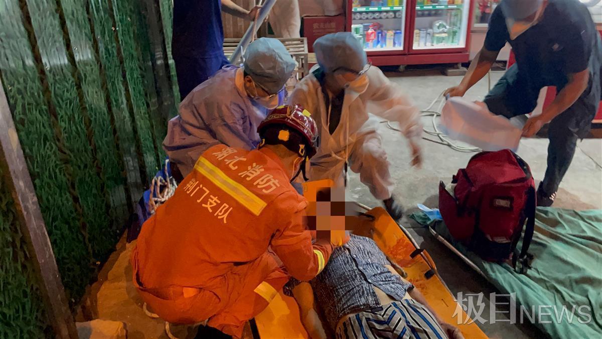 “有人跳楼了!”9月4日19时许,湖北省荆门市消防救援支队指挥中心接到龙泉派出所民警电话,称荆门市东宝区天鹅广场有人跳楼,现坠落在3楼平台上,需要协助救援。