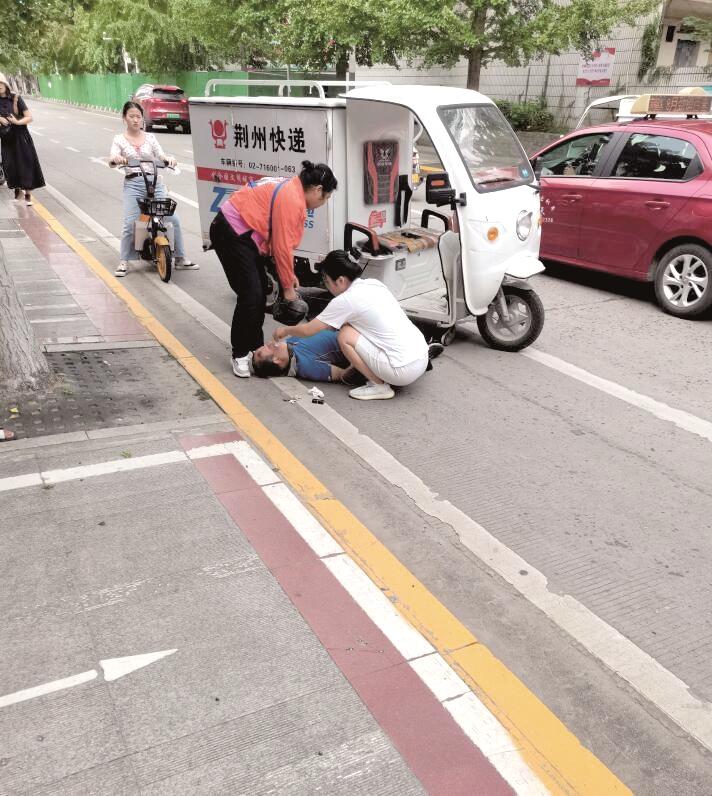 9月3日下午,在荆州市荆州区人民路荆州中心医院侧门附近,一个快递小哥突然倒地,并开始抽搐,疑似癫痫发作。梅娟娟告诉极目新闻记者,她当天正好休假,准备和男友去新房看装修,开车路过事发地时看到这一情况,立即停车下来救人。
