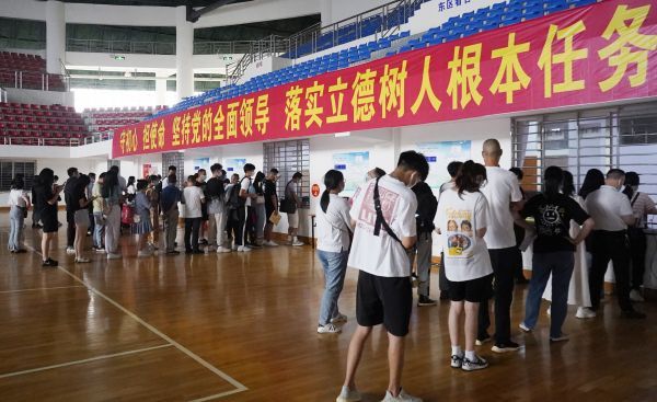 在体育馆前,学校为新生设立了“感恩·追梦——2021级新生梦想”签名墙,同学们纷纷留下了自己的青春宣言。今年的“绿色通道”继续设置了家庭经济困难学生接待处,确保他们顺利入学。