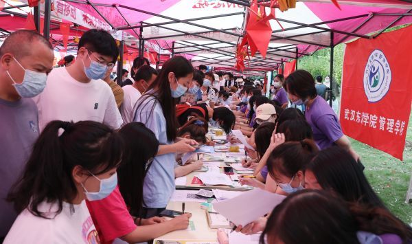 长江日报大武汉客户端9月6日讯(通讯员 李骞 胡静 王艺疌) 金秋九月,丹桂飘香。9月5日、6日,武汉东湖学院2021级本科新生陆续分批来校报到,迎来崭新的大学生活。鲜红的空飘、拱门、立柱,缤纷的迎新标语,报到现场气氛热烈、秩序井然。