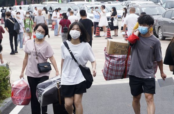 学生志愿者帮助新生运行李。 谢俊琦 摄