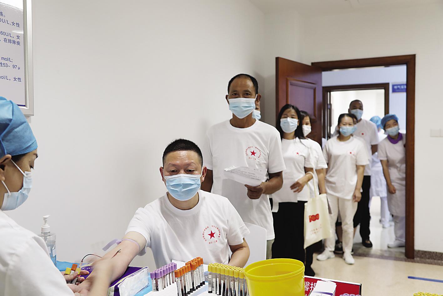 近日,武汉市江夏区人武部联合区退役军人事务局、区卫健局开展“你为祖国扛枪站岗,我为父母守护健康”活动,免费为现役义务兵的父母体检。此次体检人员范围为从江夏区入伍的现役义务兵的父母,共有370余人参加体检。(通讯员 洪培舒 摄)