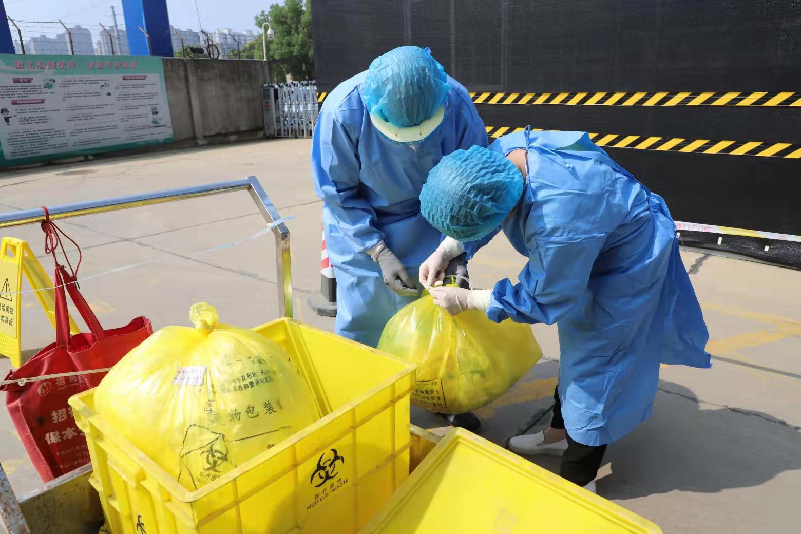 上午10时,应急演练按照方案有条不紊地进行。医疗废物运送回收人员在发热门诊接收医疗废物后,因路面不平、车辆发生倾斜,导致医疗废物掉落在地,包装袋破损,部分医疗废物洒落在地。发热门诊值班人员立即向医院医疗废物管理办公室汇报,医疗废物管理办公室季程赶往现场,并向改善办、院感办报告,医院副院长张清了解情况后,启动《医疗废物泄露应急处理预案》。
