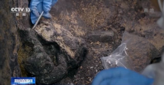 三星堆遗址4号坑发掘负责人、四川省文物考古研究院助理馆员 许丹阳:里面的陶片以矮领瓮为主,我们目前可以看到有四五件矮领瓮。可能是盛装一些谷物或者酒水,但是这个不太好说,一般我们把它说成盛储器,应该是最早放进坑里的一批器物。