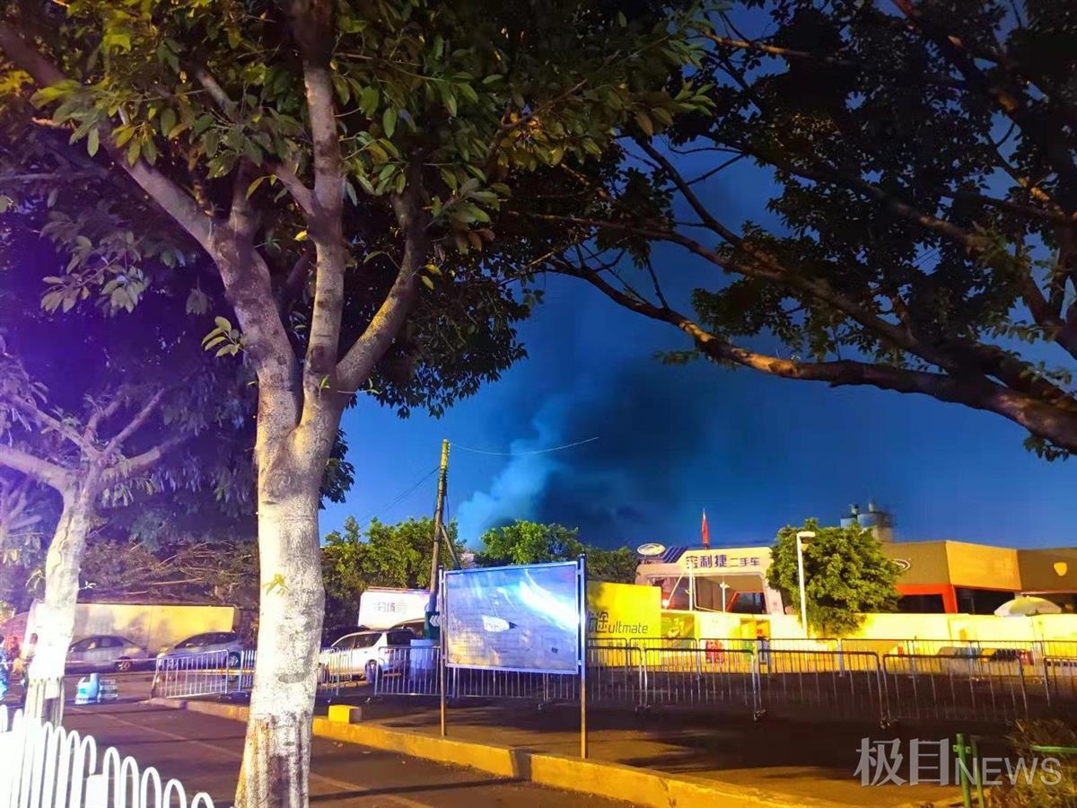 6日深夜10时许,极目新闻记者在现场看到,起火点附近数百米已经被拉上警戒线,有警务人员值守,多辆消防车停在路边,仍有浓烟飘向夜空。
