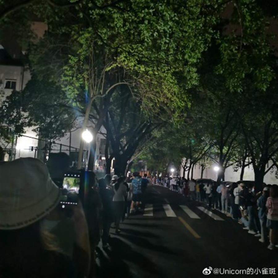志愿者连夜排队进行核酸,受访者供图
