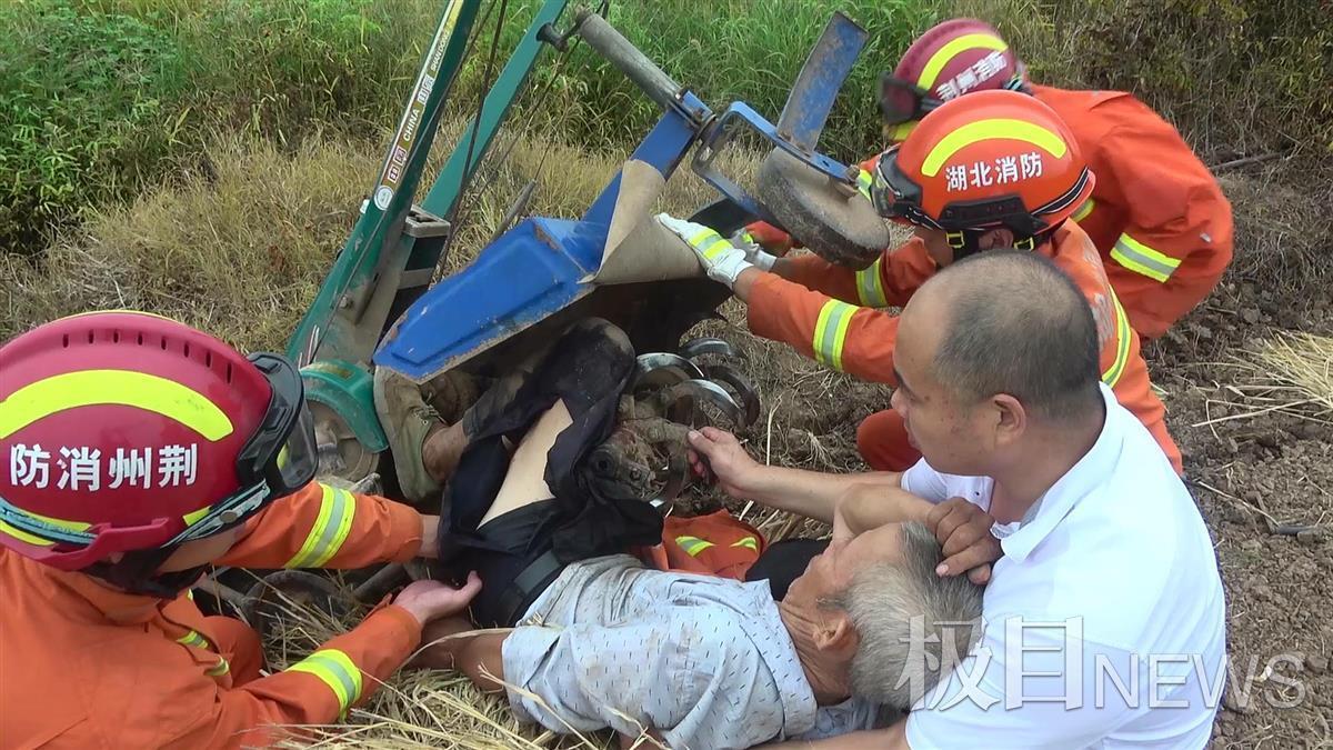 9月5日15时左右,湖北荆州监利市红城乡姜老湾村三组,一名六旬老人被耕地机卡住大腿,无法动弹,监利市消防和医疗部门接到报警后立即赶赴现场救援。