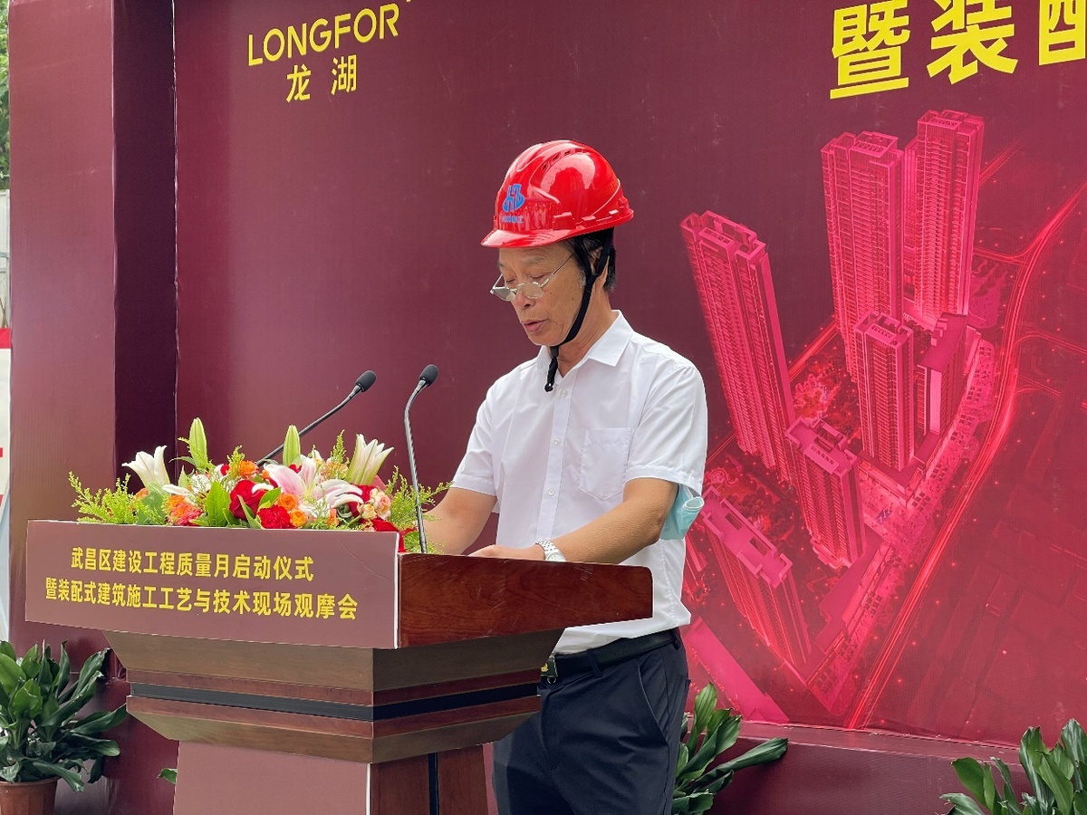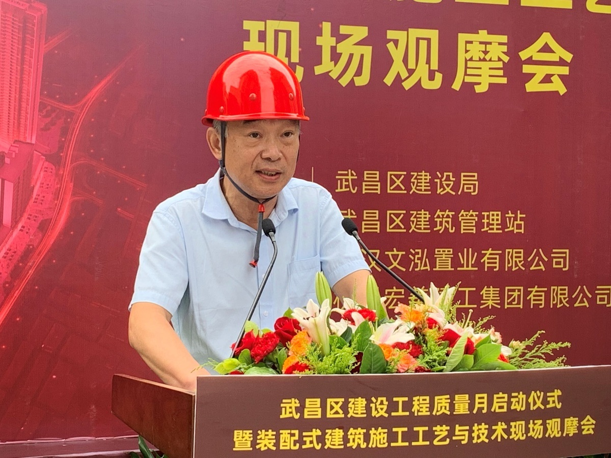 启动仪式最后,武昌区建管站站长罗宏进行总结发言,阐述了装配式作为新技术、新工艺对推动建筑行业高质量发展的重大意义,并宣布武昌区建设工程质量月活动正式开始。
