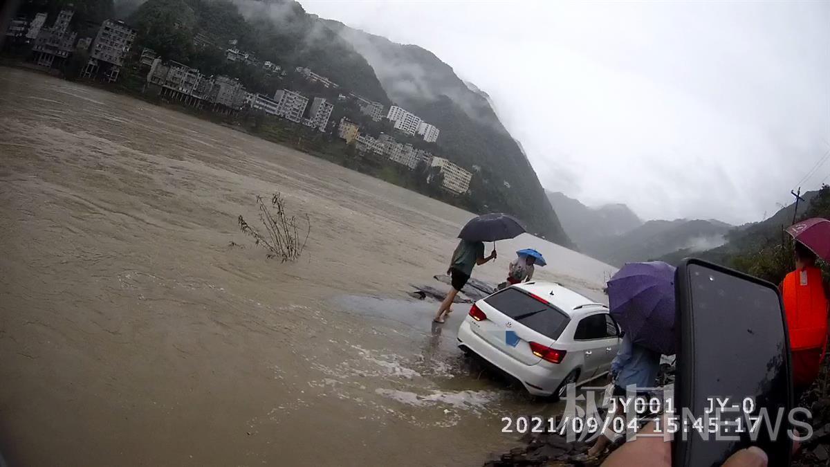 “太感谢你们了,多亏有你们的帮忙,要不然我的车就被冲走了。”驾驶员赵某对民警及前来帮助的人员不停道谢。赵某告诉民警,她是陕西省旬阳县仙河镇人,当日驾车经过渡口,一不小心,车辆滑向了路外侧,深陷泥泞,无法开动。无助之际,又看到河水不断上涨,车辆被淹。好在有大家的帮助,避免了更大的损失。