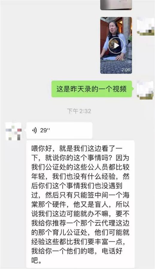 极目新闻记者从该助理提供的与大理一公证处工作人员的微信聊天记录看到,工作人员表示,他们以前都没有接触过这样的案例,可以咨询另一家公证处试试。但大泳告诉极目新闻记者,他也咨询了大理另一家公证处,得到的说法是一样的。