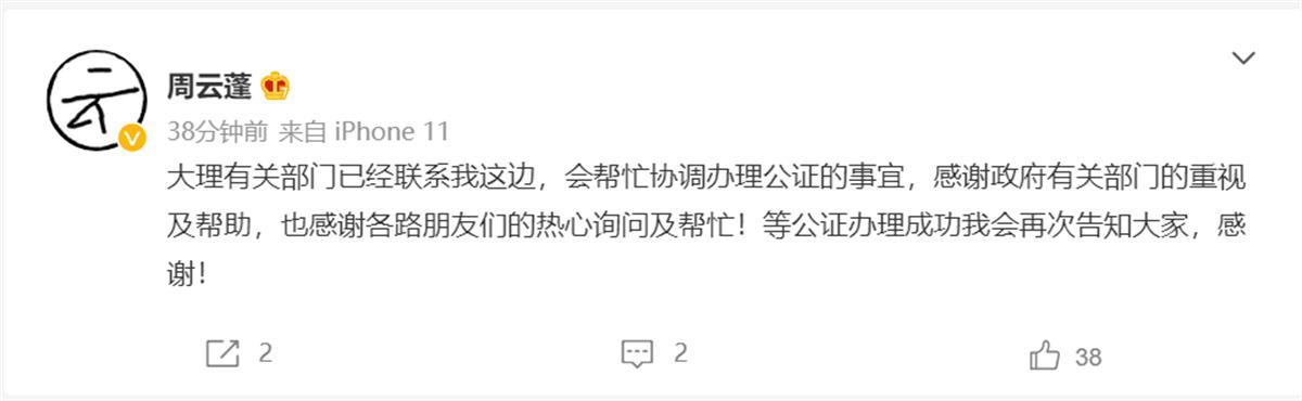 7日晚7时许,上述大理另一家公证处工作人员电话回复记者称,他们关注到了周云蓬先生所发布的微博,“此前可能因为与周先生一方沟通不畅,导致误解。如果是视障人员办理私人印章公证的话,可以通过按手印的方式予以确认。”