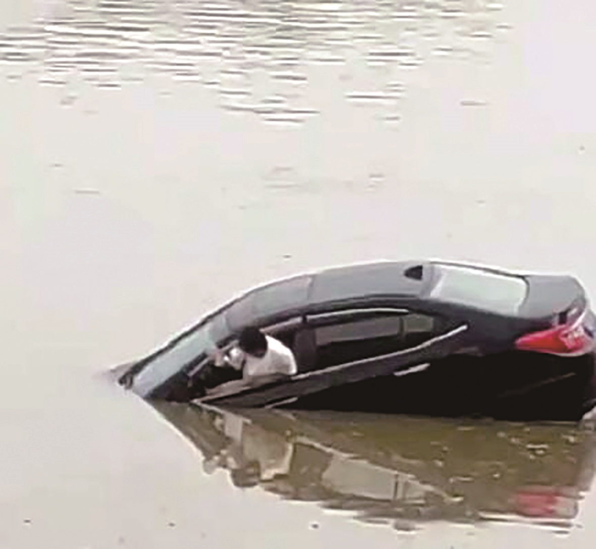 私家车入水后,驾驶员打开车门逃生