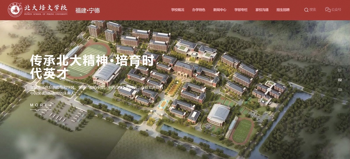 北大培文(宁德)学校微信公众号显示,该校为政府重点民生工程项目,是一所集幼儿园、小学、初中、高中及国际部于一体的全日制高品质学校。其官网介绍中也有“传承‘爱国进步、兼容并包’的北大文化和‘敢为先、常为新’的北大精神”等内容。