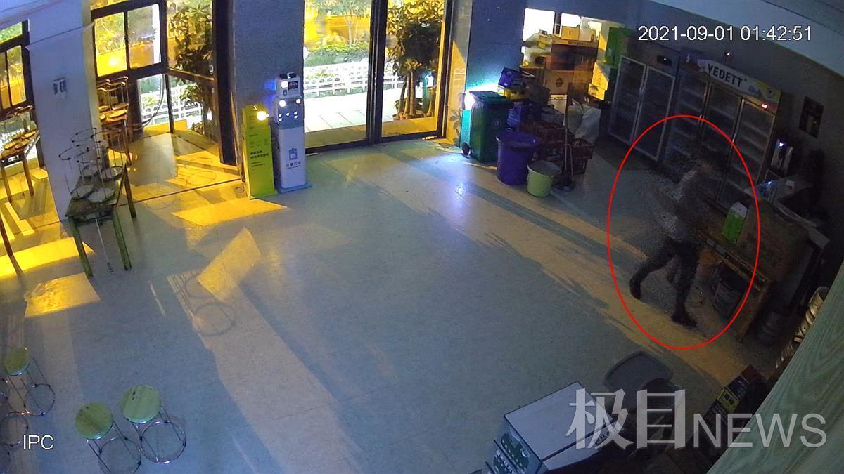 接到李先生报警后,武汉市公安局江岸区分局车站街派出所刑侦民警肖治勋等人迅速赶到烧烤店,调取店内外视频监控,发现了贼影:9月1日凌晨1时40分许,一名身穿浅色上衣、深色裤子的可疑男子出现在烧烤店附近,该男子翻窗进入店内,撬开收银机抽屉,盗走现金和表盗走后逃离。
