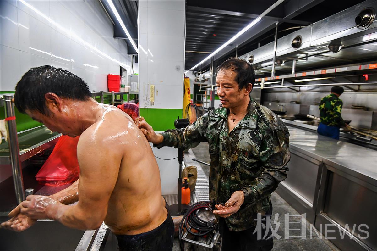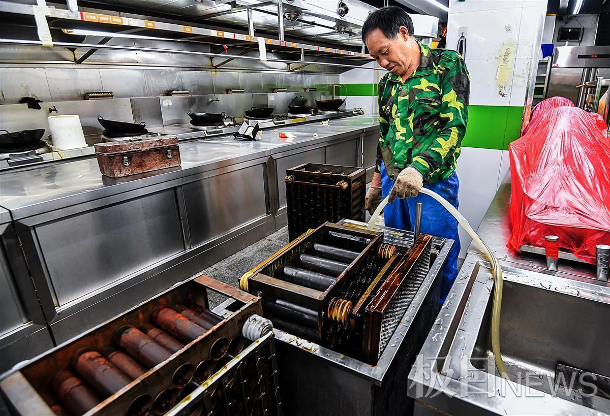 眼下正是金九银十,武汉餐饮商家们摩拳擦掌,后厨清洗也迎来高峰。上周三深夜10时,记者跟随武汉恒星清洗公司作业小组来到汉阳一家餐馆,全程直击餐厨油烟管道由浊变清,清道夫的苦与累。