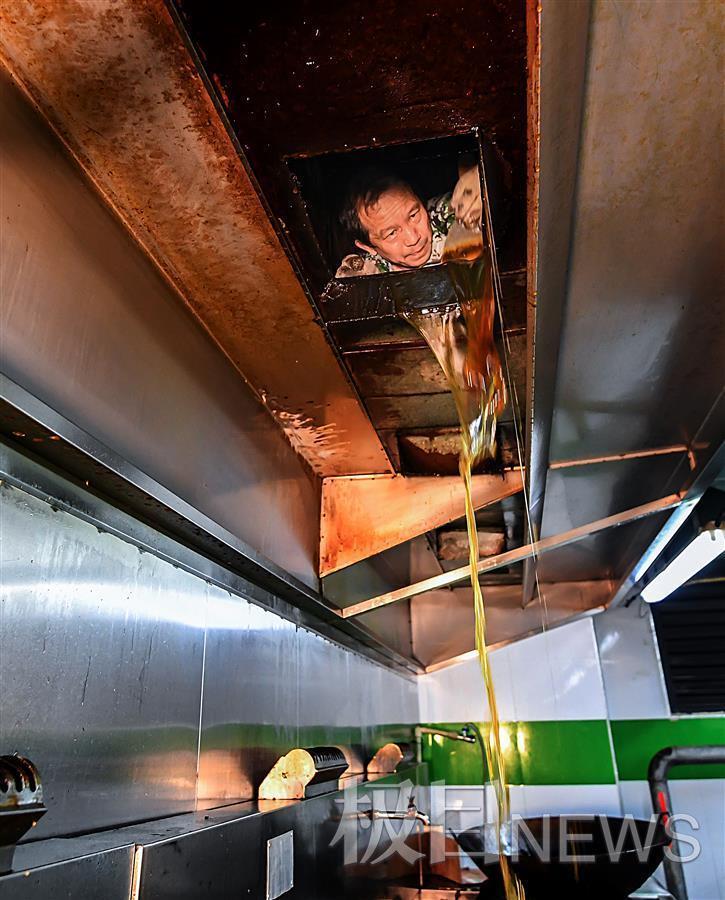 几分钟后,一手拿小钢铲,一手持强光电筒,油污清道夫肖绍芳和夏思友兵分左右两路,向油腻深厚的管道进发。