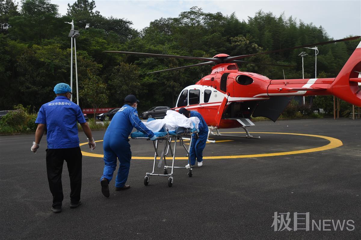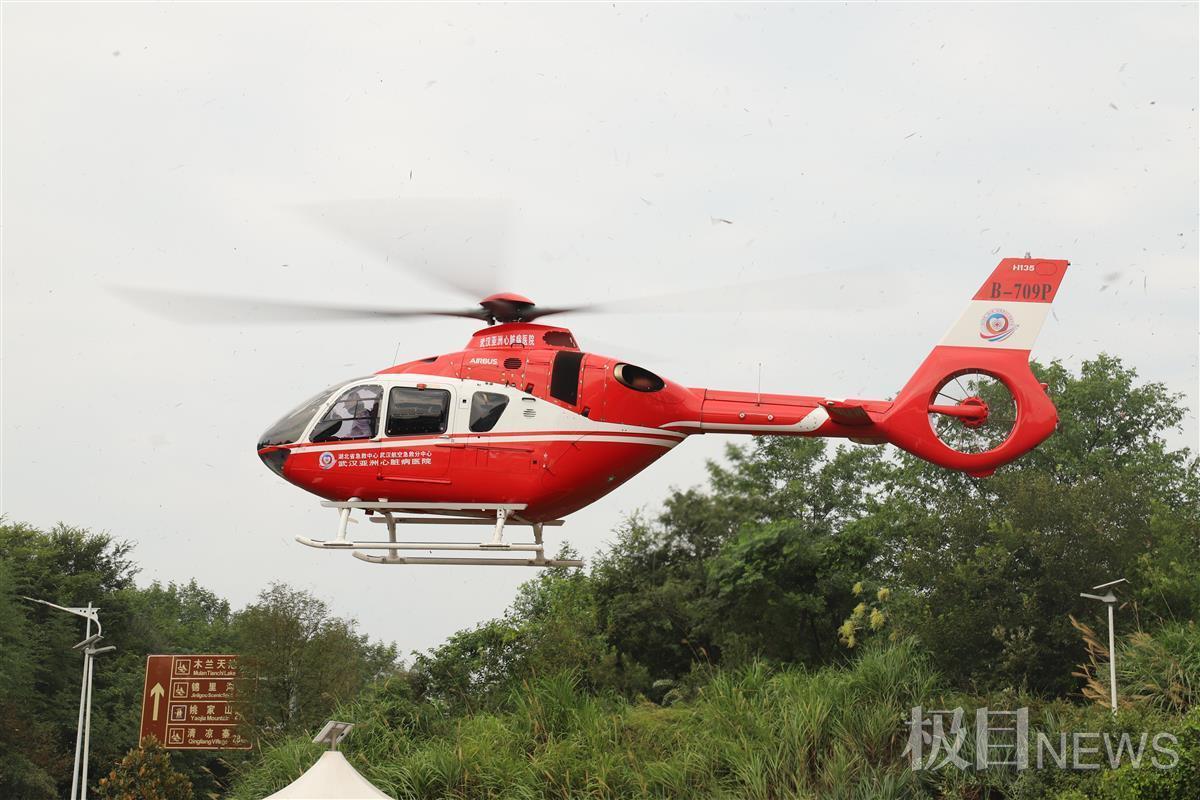 9月8日上午9时许,在山林环抱中的武汉市黄陂区长轩岭街十棵松村黄土公路旁,空中传来直升机的轰鸣声,一架武汉亚心总院的救援直升机缓缓降落在村委会门前的停机坪上。