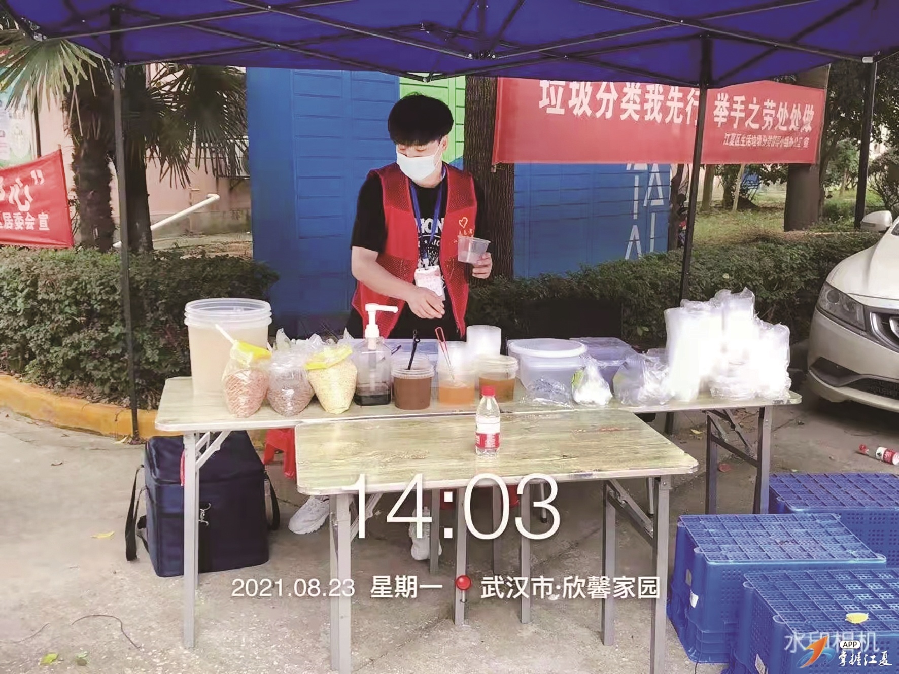 “大家排好队,不用急,百香果、草莓、桂花、红糖4种口味的冰粉都还有……”8月23日中午,武汉市江夏区纸坊街文苑社区欣鑫家园的广场上,不时响起一个清脆的声音,原来是江夏区文旅局的下沉干部史建文在小区免费赠送冰粉,在他的精心制作下,300碗承载着爱心的纯手工冰粉一一赠送到了小区居民和下沉干部的手中,在闷热的天气中为群众送来冰爽与惬意。
