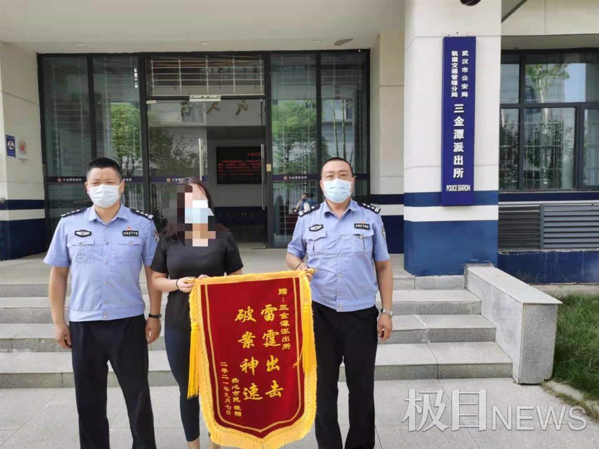 拿到失而复得的文件袋,王女士眼泪止不住地流了下来,再三感谢武汉警方的倾力帮助。9月7日,王女士制作了一面写有“雷霆出击破案神速”的锦旗,送给武汉轨道公安分局三金潭派出所民警,以表达感激之情。