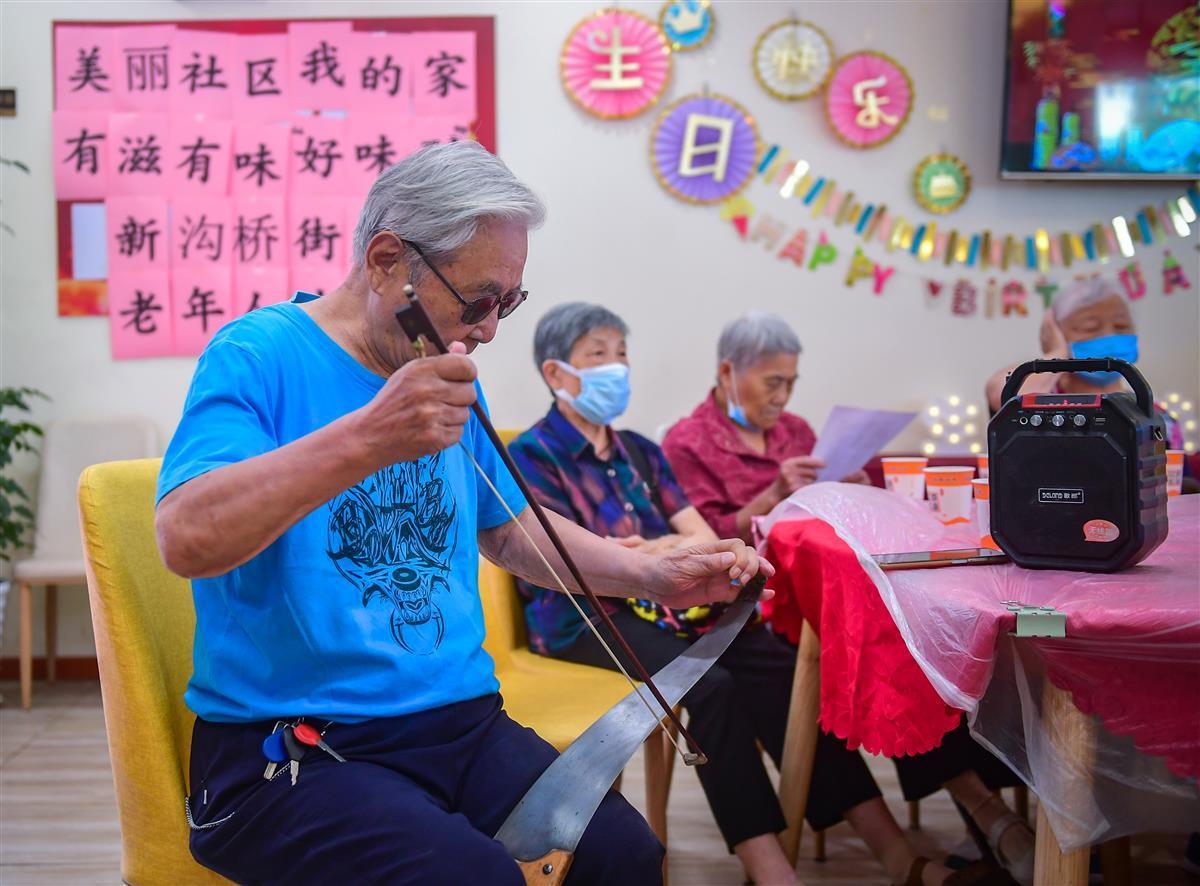 青山区新沟桥街光明社区金国钦老人,今年85岁,退休后热衷锯琴。走到哪,都会带上自己的便携小音响,打开手机里的音乐伴奏,开始了一个人的音乐享受,锯琴演奏。“一天不摸琴,感觉缺少点什么,音乐让我感到很快乐!”金国钦老人告诉极目新闻记者,锯琴作为小众乐器,还未被公众熟知,锯琴虽然演奏得人不多,但是可以拉很多曲目,有革命歌曲,有流行歌曲,都很好听。他经常在公园里拉锯琴,也因此交到了不少琴友,大家乐器虽然不同,但是拉起来,格外动听和谐,他特别喜欢以琴会友的感觉。