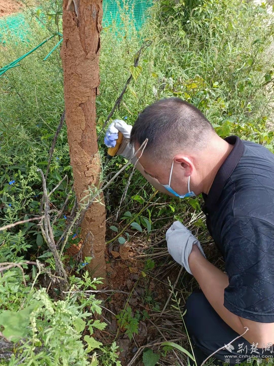 荆楚网(湖北日报网)讯(通讯员程国辉、柴小敏)9月9日上午,应城市白蚁防治所接到群众求助电话称义和镇龙赛湖村有一片果园遭到白蚁侵袭,导致果树长势差、枝干受损,挂果率不够理想,果园业主很是着急。群众的事,不容马虎。应城市白蚁防治所立即组派3名施工人员,烈日炎炎驱车紧急驰援。