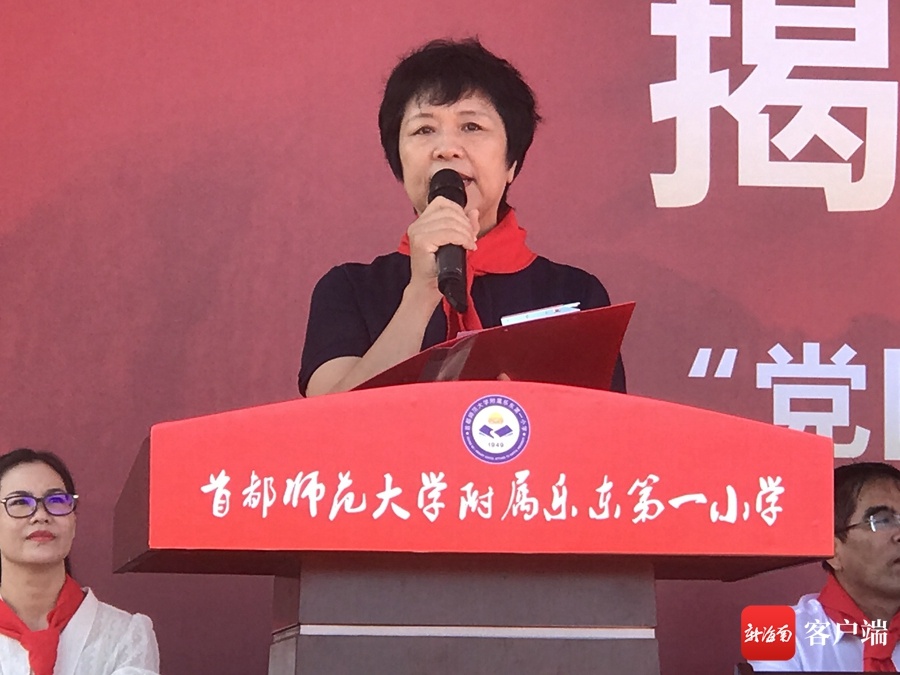 首都师范大学附属乐东第一小学校长杨艳丽发表讲话。记者 林师堂 摄