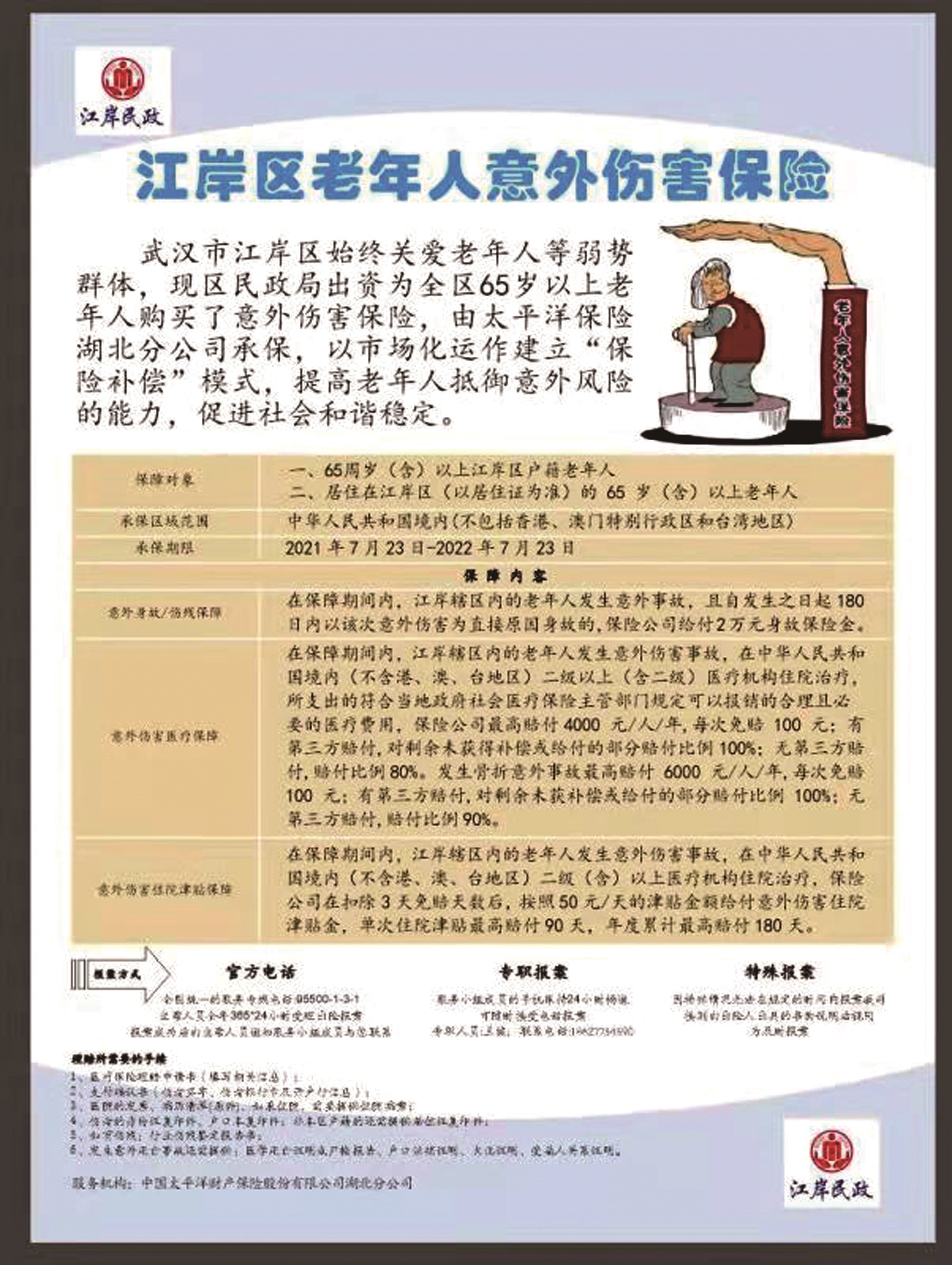 今年起,江岸区65岁以上老人都有了政府购买的意外伤害保险