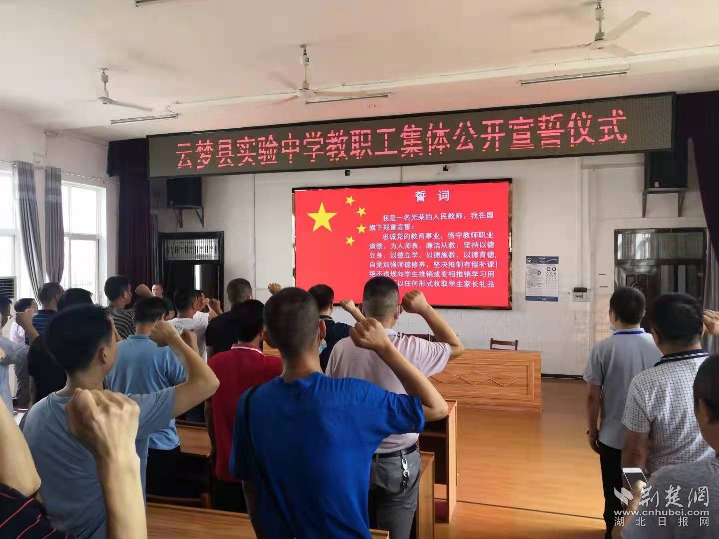 云梦县实验中学教职工集体公开宣誓仪式。通讯员 供图