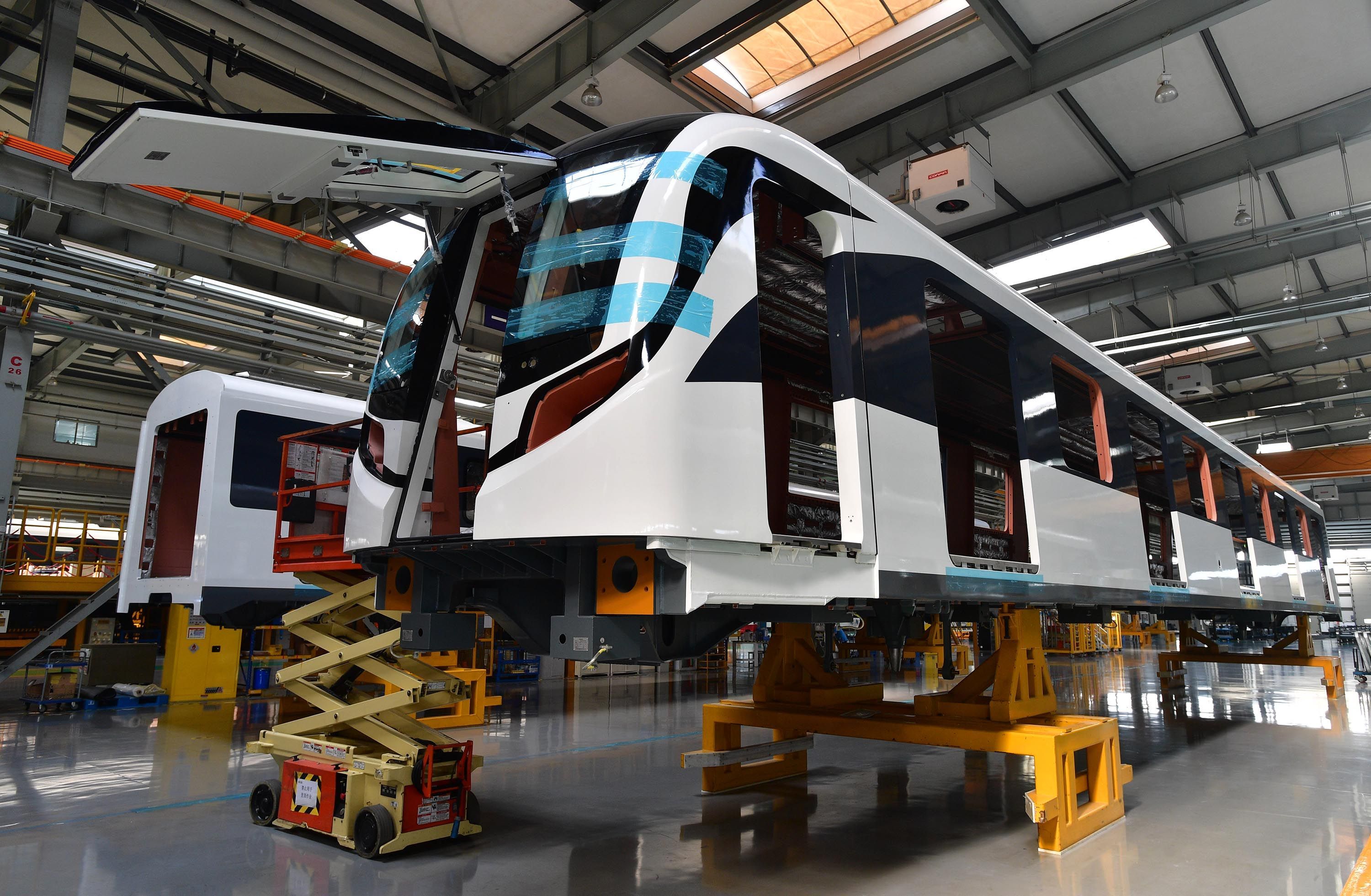 9月9日,武汉中车长客轨道车辆公司车间内,一辆辆地铁列车正在组装、调试中。记者李永刚 摄