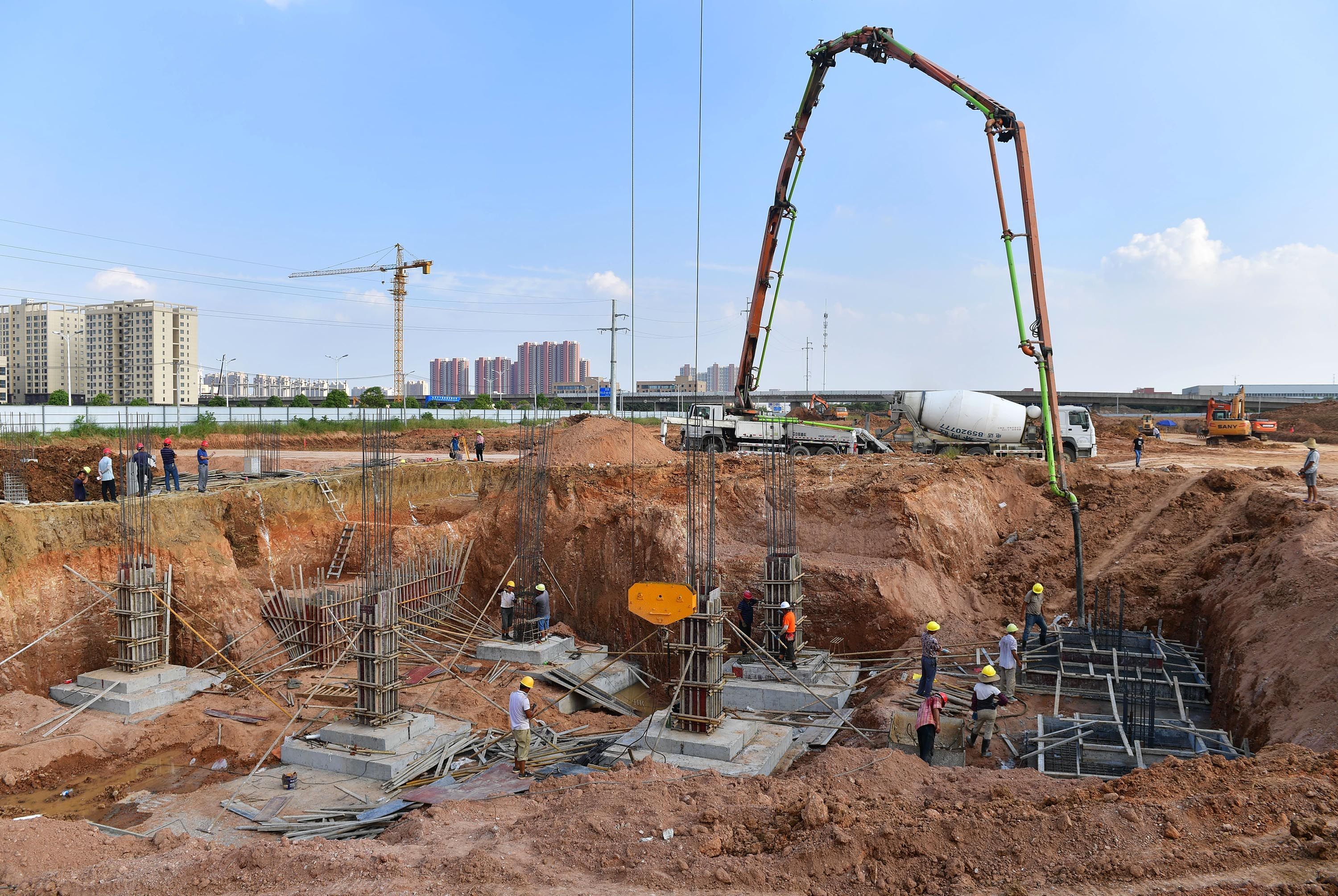 轨道交通装备智造园是基地的启动区,占地面积约6.87万平方米,今年3月开工,目前正在抓紧建设中。9日下午,记者现场看到,多台挖掘机、泵车、塔吊正在作业,建设者们正紧张施工。