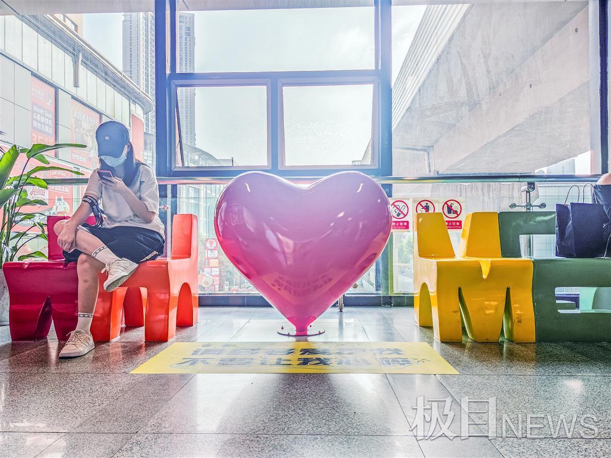 它由“武汉地铁”的英文:WH METRO的六个字母为主题的七把椅子和一个心形组成,吸引了不少年轻人自拍。据了解,这是继今年4月,武汉地铁在汉口火车站,设置首个爱心候车区后的又一个,这一个设计感更强,更加吸引人。