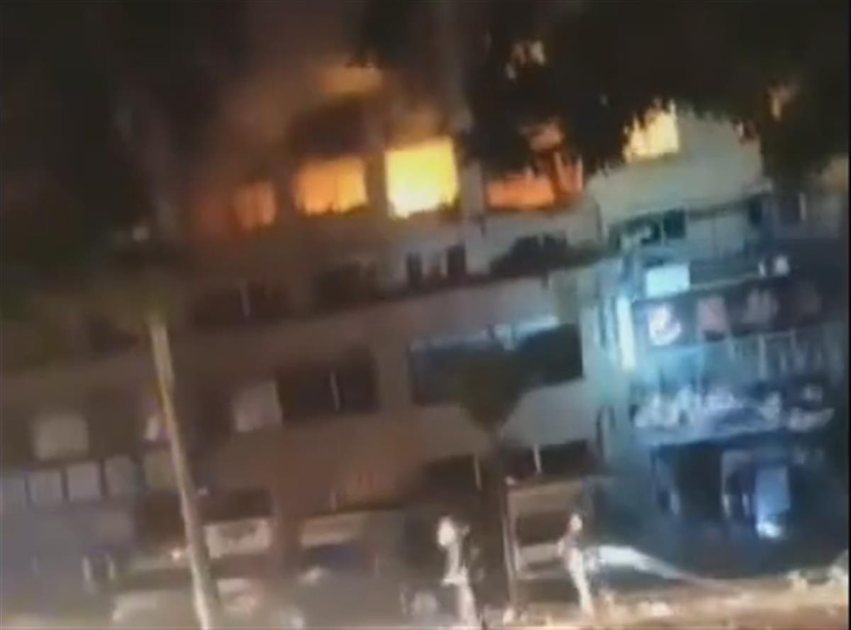 多段现场视频显示,多间民房内火光冲天,消防工作人员正全力进行抢救,有消防员背着一名女子退到安全位置。