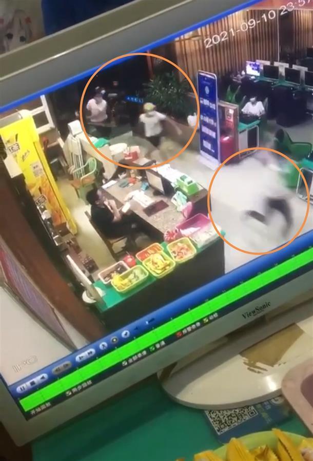 9月10日,广东廉江的一家网咖内,几名男生在柜台选购商品进行消费,门外突然冲进5名手持棍棒的少年,并追打正在柜台消费的男生,随后,手持棍棒的少年骑着3辆电动车扬长而去。极目新闻记者获悉,这些男生均为当地学生,警方已介入调查。